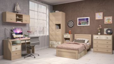 - Каркасы модулей ЛДСП 16 мм/ 22 мм в декоре «Дуб Сонома светлый» - Фасад ЛДСП 16 мм в декоре «Дэйли» с накладным профилем - Регулируемые опоры - Петли с доводчиками на всех фасадах - Шариковые направляющие полного выдвижения - Высота шкафов – 2230 мм - Кровати комплектуются латами и настилом из бруском - Ручки металлические цвет – «Бронза полированная» с белой вставкой В комплект входит: «Ультра» 1 Шкаф для одежды «Ультра» 11 Шкаф навесной «Ультра» 2 Шкаф комбинированный «Ультра» 7 Тумба с нишей «Ультра» 5 Кровать одинарная на 900 мм «Ультра» 3 Комод Минимальная сумма заказа 1000 рублей. Возможен самовывоз.