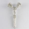 Детская серебряная погремушка с фигуркой ангелочка держащим в руках колокольчики. None