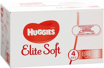 - Huggies Elite Soft 132 подгузника в пачке 8 14 кг по выгодной цене 5 290 р. руб.;