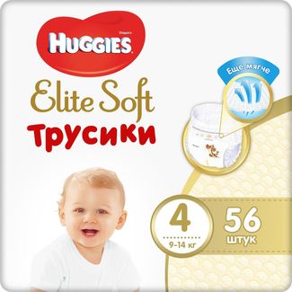 - Huggies Elite Soft 56 трусиков в пачке 9 14 кг по выгодной цене 2 790 р. руб.;