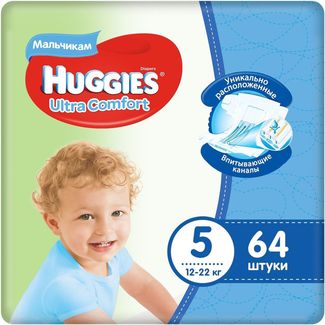 - Huggies Ultra Comfort 64 подгузника в пачке 12 22 кг по выгодной цене 2 750 р. руб.;