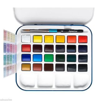 - Краски DALER ROWNEY 131900924 Дорожный набор (акварель 24 кювет, кисть и палитра) по выгодной цене 2 230 р. руб.;