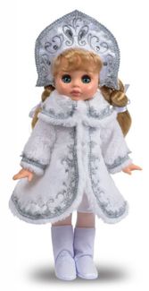 Производитель оставляет за собой право изменения цветовой гаммы одежды и волос куклы, цвет глаз может варьироваться. Снегурочка Эля из серии "Моя любимая кукла" может стать настоящей подружкой для ребенка. В комплект одежды входит: платье из шелка, шубка из искусственного меха, колготки и кокошник. Комплект дополняют сапоги из искусственной кожи. Игровые и дидактические возможности куклы Наличие элементов одежды, которые легко снимаются и надеваются, разнообразит возможности сюжетно-ролевых игр с этой куклой, в процессе которых развивается мелкая моторика и творческое воображение ребенка. Благодаря образу Снегурочки кукла может стать героиней многих любимых сказок, на основе которых ребенок будет создавать сюжеты своих игр. Прекрасные прошитые волосы из качественного нейлона, похожие на натуральные, можно завивать, расчесывать, укладывать в разные прически, меняя образ куклы. Рост куклы 30,5 см. Игрушка не озвучена. Глаза вставные закрывающиеся. Тело куклы пропорционально. Ручки и голова выполнены из эластичного, приятного на ощупь винила, а туловище и ноги из пластмассы. None