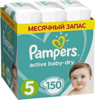 - Pampers Active Baby Dry 150 подгузников в пачке 11 16 кг по выгодной цене 4 850 р. руб.;