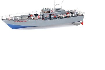 Радиоуправляемый корабль Heng Tai торпедный катер 1:115 2.4G - HT-2877B представляет собой коллекционную мини версию британского торпедного корабля. Модель управляется с помощью полнофункционального пульта дистанционного управления, радиус действия которого составляет 80 метров. Корабль оснащен двумя мощными электродвигателями, которые контролируют работу двух винтов. Основными особенностями это модели являются: четкая детализация всего корпуса, быстрозарядный аккумулятор, высокая скорость и маневренность. Длина корабля составляет 49 см, вес 1,31 кг. Данная модель предназначается для детей старше 3 лет.Основные характеристики: • Новая аппаратура работающая на частоте 2.4G, что позволяет запускать данную игрушку вместе с другими одновременно. • Радиус действия пульта управления ~ 80 м. • Время эксплуатации на одной зарядке ~ 15-20 мин.• Время зарядки аккумулятора ~ 5 часов • Аккумулятор NiCd 6 В 800 мАч • Размер катера (Д х Ш х В) - 49 х 13 х 15 см. • Вес катера 1.31 кг. Комплектация: • катер, • аккумулятор (NiCd 6v 800mAh), • зарядное устройство, • пульт. Комплект требует: 2 батарейки типа АА для пульта управления None