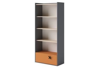 • Открытый книжный шкаф с выдвижным ящиком в нижней части. • В верней части расположено несколько открытых, широких полок для книг, фотографий и прочих небольших вещей. • Шкаф Вы можете заказать в двух цветовых вариантах - графит/кремовый/оранжевый или графит/кремовый/зеленый. • Особенностью коллекции являются ручки мебели, благодаря которым и появилось название коллекции. • Материал мебели - ЛДСП. Размеры: Ширина:80 Глубина:40 Высота:190 Необходима предоплата.