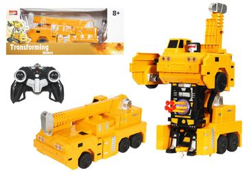Радиоуправляемый автокран и робот одновременно, трансформер со звуковыми и световыми эффектами, а также с возможностью стрельбы присосками. None