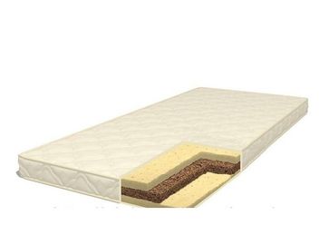 Детский ортопедический матрас. Комфортная модель матраса средней жесткости. Наполнителями матраса служат 2 слоя латекса и помещенный между ними слой кокосовой койры. Достаточно комфортный и в то же время упругий матрас, изготовленный исключительно из натуральных материалов. Кокос и латекс — прочные, натуральные, экологически чистые материалы, не вызывающие аллергии, не поддающиеся гниению и деформации даже в условиях повышенной влажности. Могут многократно восстанавливать первоначальную форму в течение длительного срока службы.
