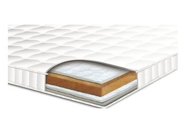Матрас обшит чехлом из хлопкового жаккарда, простеганным с хлопковым наполнителем. Возможно выполнение данной модели с изменением слоев, - в виде ассиметричного матраса. Высота 10 см.