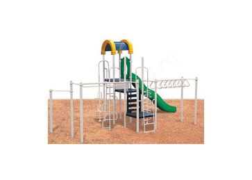 Материал: Переходные платформы, стойки, лаз в виде скобы, перильца и поручни, металлические (порошковое полимерное покрытие деталей); Пластиковые элементы: Скаты, декоративные ограждения, крыши комплекса. Мостик переходной и лаз канатный из каната внутри оснащенного металлической проволокой.Комплекс выдерживает температуру до -70 градусов. при заказе от 30 тысяч рублей - 100% предоплата. Есть доставка.