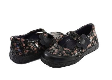 Стильные туфли на улицу в теплую погоду и в детский сад в любую погоду. С супинатором, на широкую ножку, цветная натуральная кожа - цветы на черном фоне. None Возможен самовывоз. Есть доставка.