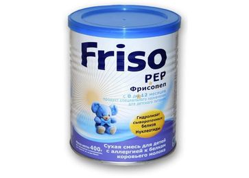 Специальная детская смесь Фрисопеп, предназначена для детей с рождения до 12 месяцев с аллергией к белкам коровьего молока. Детская смесь Фрисопеп с нуклеотидами предназначена для питания детей с умеренно выраженной непереносимостью белков коровьего молок