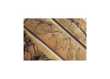 Изразцы, плитка, любая керамика очень красиво смотрится в терракотовом исполнении. Поверхность изразца или плитки остается не глазурованной. Для того, чтобы подчеркнуть рельеф или рисунок, глазурь наносится только на рельефные части плитки или изразца.