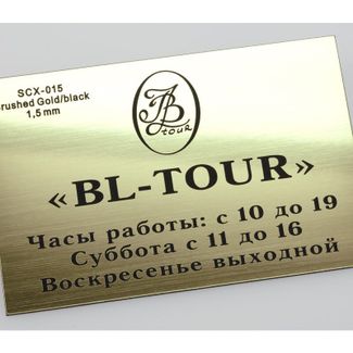 015 пластик шлифованное золото/черный (Brushed Gold/black) 6003001,5мм Производство: Long Star (Китай) Применение: двуслойный пластик для лазерной гравировки для изготовления табличек, бейджей, шильдиков, номеров квартир. Размер: 600*300 ммТолщина: 1,5 ммВнимание! При изготовлении табличек с большой площадью гравирования лист может выгибаться, используйте пластик 3 мм. None Можно купить без предварительного заказа. Возможен самовывоз. Есть доставка.