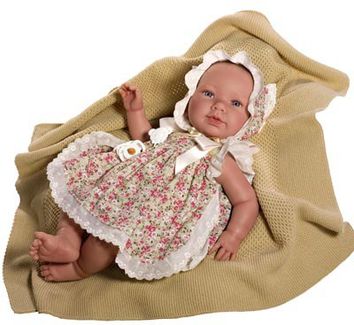 Реборны, 50 см. Реборны ASI выполнены из винила, тело – мягконабивное, поэтому они очень легкие и способны принимать естественные положения, когда Вы держите его на руках или сажаете. Реборн выглядит очень натуралистично благодаря тщательной проработке мельчайших физиологических подробностей. Есть складочки на ручках и ножках. Данные реборны выпущены ограниченным тиражом и имеют персональный сертификат. Кукла-реборн, размер 50 см, тело мягконабивное, лимитированная серия, в платье в цветочек и чепчике, в комплекте коричневый плед и пустышка, есть пе