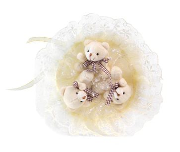 Букет с медвежатами Зефирки, 3 шт, цвет белый молочный