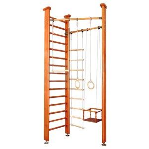 Возможные цвета комлекса: Натуральный, Орех(медовый), Венге Страна происхождения: Россия Способ установки: враспор между полом и потолком Материал: дерево Изготовлено: стойки – сосна, перекладины – береза Высота: от 2,67 до 2,72 м Ширина комплекса: 0,65 м Занимаемая площадь: 0,65 х 0,91 м Диаметр ступени: 35 мм Ширина ступени: 0,56 м Шаг ступени: 0,26 м Тип ступени: дерево, покрыто лаком Допустимая нагрузка на навесное оборудование: 50 кг Комплектация: шведская стенка, качели, трапеция, кольца пластиковые Допустимая нагрузка: 120 кг Вес комплекса: 33 кг Упаковка: картонная коробка и полиэтилен Допустимая нагрузка на турник: 120 кг Размеры упаковки: 1 место 0,65 х 0,10 х 2,70 м 2 место 0,33 х 0,14 х 0,52 м None Есть доставка.