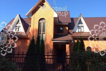 Кирпичный дом, внешне отделан облицовочным кирпичом, площадью 420 кв.м с отделкой "под ключ". У дома кровля - металлочерепица, окна - простые деревянные.