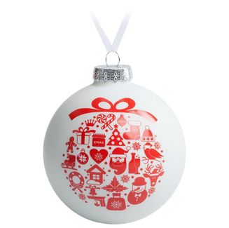 Закажите Елочный шар Новогодний коллаж, 10 см, белый с красным у компании Любимые Подарки в Москве на портале Alloy: