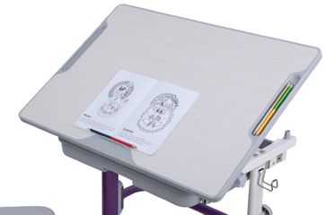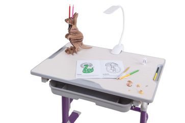 Назначение: Наклоняемый учебный стол Модель: Учебный стол для одного ребенка Материал: E1 MDF/ABS+PP/Сталь Толщина: 15 мм Доступный цвет: Фиолетовый Габариты стола (ШхГхВ): 688x480x520-740 мм Размер столешницы: 688x480 мм Размер наклоняемого стола: 688x480 мм Хранение: Выдвижные ящики