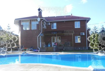 Основное здание, 2-х этажное с мансардой, из кирпича, общей площадью 330 кв.м: холл, гостиная, кухня-столовая, гардеробная, мастер спальня с с/у и выходами в кабинет и детскую комнату, 3 спальни, зимний сад, бассейн с противотоком, сауна, 2 с/у, 3 балкона, терраса, котельная.