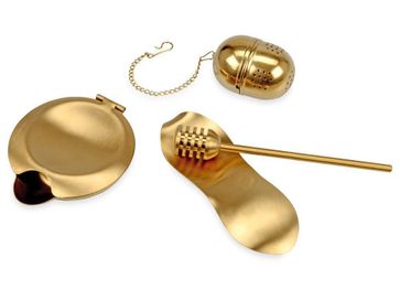 <p>В набор аксессуаров для чаепития входит ложка для меда, чашечка с носиком для выдавливания сока лимона и ситечко для заваривания чая, которое можно закрепить на металлической пластине, чтобы оно не утонуло в чашке.</p> <p>Когда чай заварится, эту же пластину можно использовать как подставку для ситечка.</p> <p>В наборе аксессуаров для чая все продумано до мелочей, чтобы чаепитие было по-настоящему приятным.<br /><br />Вес: 180 г.<br /><br />Цвет: золотистый <br /><br />Размер товара: 140 х 140 х 20 мм.<br /><br />Материал: металл <br /><br />Комплектация: пресс для лимона, ложка для меда, ситечко для чая, подставка для ложки и ситечка</p> Наличные, безнал., карты, эл. деньги, юр. лица Возможен самовывоз. Есть доставка.