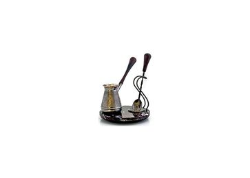 Подарочный набор для истинных кофейных эстетов включает в себя медную турку, медную ложечку и элегантную подставку из натурального мрамора.