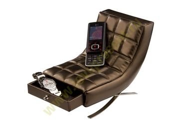 Сувенир очень остроумно выполнен в виде кресла-качалки. Это дало возможность разместить в нем шкатулку для хранения необходимых аксессуаров. На столе такой необычный подарок смотрится обалденно. Коллекция «12 стульев» имеет непосредственное отношение к одноименному произведению Ильфа и Петрова. Миниатюрные кресла и диваны на самом деле – изящные шкатулки для хранения драгоценностей, бижутерии и разнообразных мелких вещиц. Габариты: 29х16х11 см; Материал: искусственная кожа;Вес (1 шт): 765 г