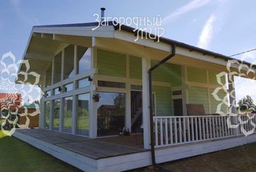 Кулаково. Фахверковый зимний дом 120 кв. м с двумя спальнями на первом этаже, с каркасом из клееного бруса сечением 200Х300. Утепление - 200 мм. Наружная и внутренняя отделка - имитация бруса. Полностью застекленная стена в гостиной придают расширение пространства и дают много света и воздуха в доме и ощущение соединения с природой. Кровля выполнена из мягкой черепицы, окна - пластиковые стеклопакеты. Фундамент: бетонные сваи - ростверк - утепленная монолитная плита.