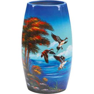 <p>Отличная ваза поможет внести яркое пятно в интерьер любого помещения.</p> <p>Ваза &laquo;Утиная охота&raquo; с изображением диких уток выполнена из качественной керамики и раскрашена сочными цветами.</p> <p>Ваза станет превосходным подарком для заядлых охотников.</p> <p>Цвет: синий/разноцветный<br />Материал: керамика<br />Вес: 2170 г.<br />Размер товара: d210 x 370 мм.</p> Наличные, безнал., карты, эл. деньги, юр. лица Возможен самовывоз. Есть доставка.