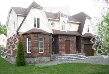 Покоево. Дом в охраняемом СНТ. Дом из клееного бруса, внешне первый этаж отделан искусственным камнем, второй этаж отделан сайдингом свнутренней отделкой "под ключ". У дома фундамент - монолитный ленточный, кровля - мягкая черепица, окна - пластиковые стеклопакеты.