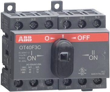 - ABB Рубильник реверсивный ABB OT40F3С 40A 3-полюсный (ручка в комплекте) по выгодной цене 4 390 р. руб.;