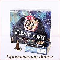 - Благовония конусные HEM Attracts Money (ПРИВЛЕЧЕНИЕ ДЕНЕГ) по выгодной цене 100 р. руб.;