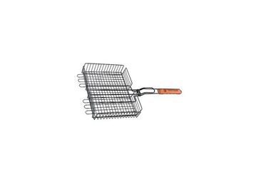 Высококачественная жаропрочная сталь. Эргономичная рукоятка. Широкое кольцо-фиксатор. Конструкция объемной решетки гриль позволяет фиксировать верхнюю плоскость на разной высоте, поэтому на решетке можно запекать продукты различной толщины — от стейков до куриных окорочков, не передавливая их и оставляя сочными. None