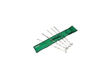 В комплекте 6 шампуров, нейлоновый чехол. Длина: 450 мм. Ширина: 10 мм. Толщина: 1,5 мм. Все шампуры изготовлены из пищевой нержавеющей стали марки 2Сr13. Толщина шампуров составляет 1,5 мм, благодаря чему они не деформируются и не прогибаются под тяжестью продуктов. Винтовые ручки на шампурах, легко проворачивающиеся в прорезях мангала, обеспечивают максимально равномерное приготовление продуктов. Чехол в комплекте удобен для хранения набора и особенно для его транспортировки. Минимальная сумма заказа без доставки 500 руб.