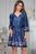 Туника длиной до колен с рукавами длиной 3/4 выполнена из искусственного шелка насыщенного синего цвета, принтованного оригинальным купонным рисунком в виде изящного барельефа по низу изделия и рукавов. Низ рукавов и изделия декорированы тонким белым кантом. По центру горловины туники - стилизованная под широкую цепь подвеска. В боковых швах есть карманы. Тунику можно носить с поясом и без пояса. None