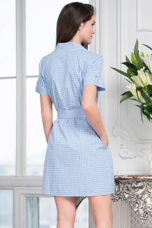 Рубашка с коротким рукавом, выполнена из сочетания 2-х видов клетки с отделкой в виде белого канта. По бокам расположены карманы. Линию талии можно подчеркнуть за счет пояса. None
