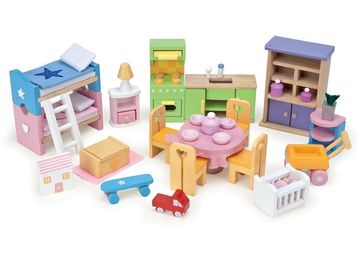 Набор кукольной мебели из дерева, состоящий из 35 предметов. Предметы для детской, кухни и столовой. None
