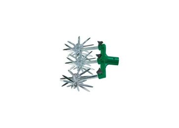 Культиватор садовый шестиколесный применяется для аэрации и рыхления почвы на грядках и клумбах. Может использоваться одна, две или три пары колес. Колеса смонтированы под углом к вертикали, каждая пара на отдельном кронштейне, что дает возможность гибко комбинировать количество колес при работе. На каждом колесе имеется по 8 шипов длиной 50 мм, колеса изготовлены из алюминия. Станина выполнена из алюминиевого сплава, окрашена, обеспечивает охват рабочей ча- сти 175 мм. Монтаж и демонтаж кронштейнов с колесными парами производится при по- мощи барашковых винтов. На станине имеется тулейка для использования удлиняющей штанги либо черенка. Внутренний диаметр тулейки 25 мм, что позволяет использовать черенок 68432, предназначенный для метел. В комплект входит удобная удлиняющая рукоятка 200 мм, рассчитанная на работу с одной парой колес. None