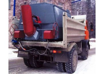 Бункеры устанавливаются в кузов самосвалов различных марок и грузоподъемности. Крепление оборудования выполняется при помощи болтов с днищем кузова или талрепов с дополнительными распорками, а также с опорами обеспечивающими монтаж- демонтаж оборудования без крана.