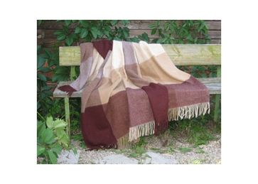 Плед из шерсти верблюжонка с кистями, цвет бежево-бордовая клетка. При производстве не используются красители. Очень мягкий, совершенно не колючий, плед - степень очистки мертвого волоса после процесса обезволашивания не превышает 1%.