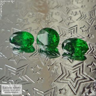 - Гарнитур три сертифицированных ярко-зелёных граната цаворита (тсаворит) из Танзании огранка круг 5,53мм и овал 6x4мм 2,44 карата в каталоге Драгоценные и цветные камни в Москве;
