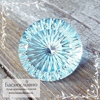- Небесно-голубой топаз (оттенок Sky blue) из Бразилии отличная огранка в Баснословно фантазийный круг 18мм 25,75 карат по выгодной цене 22 500 р. руб.;