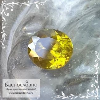 Закажите Зелёно-жёлтый сфен (титанит) из России огранки овал 10,15x9,09мм 4,24 карата у компании Магазин редких драгоценных камней Баснословно в Москве на портале Alloy: