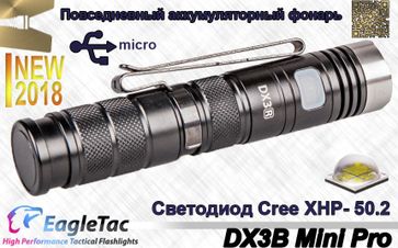 Аккумуляторный EDC фонарь EagTac DX3B Mini PRO XHP50.2, создан для повседневного использования, он может светить ярко, и очень ярко! Это фактически, вариант фонарика ИглТак DX3B Mini, они отличаются только комплектацией.