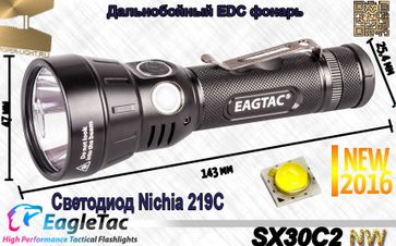 Новинка 2016 года — EagleTac SX30C2 NW на светодиоде Nichia 219C, с яркостью 740 люмена, это модификация светодиодного фонаря, аналогичная TX30C2 NW, но с увеличенной дальностью.