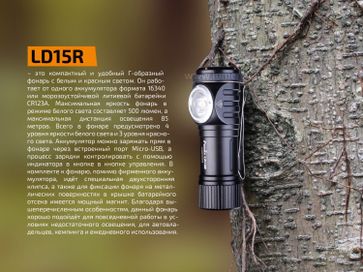 Новинка 2018 года — Многоцелевой фонарь Fenix LD15R, это компактный, светодиодный фонарик «Г» образной формы, яркостью 500 люмен, с аккумулятором, встроенным зарядным устройством и торцевым магнитом. Идея «углового» фонарика не нова, можно вспомнить известные, в свое время, фонари состоявшие на оснащении армии США и Израиля, а также армейские фонари на квадратных батарейках. Благодаря своей не обычной форме у такого фонаря имеется огромное количество применений: