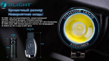 - Olight Светодиодный EDC фонарь Olight S1Mini 600 люмен по выгодной цене 3 500 р. руб.;