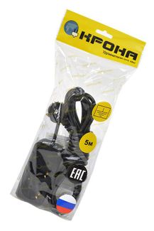 - Удлинитель сетевой КРОНА РС-2 зем (У16-01) 5 м (ПВС 3Х0.75) черный BL1 по выгодной цене 245 р. руб.;