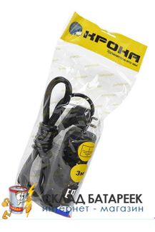 - Удлинитель сетевой КРОНА РС-3 зем (У16-001) 3м (ПВС 3Х0.75) черный BL1 по выгодной цене 180 р. руб.;
